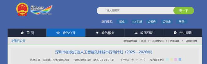 深圳的雄心远不止于此。在最新出台的《深圳市加快打造人工智能先锋城市行动计划(2025—2026年)》有一个说法尤其值得关注: