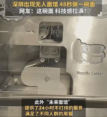 场景不仅验证技术,更催生新业态。不久前,深圳就出现了一家无人面馆。从制作面条到烹饪出餐,全程机器人操作!整个过程不需要人工参与!