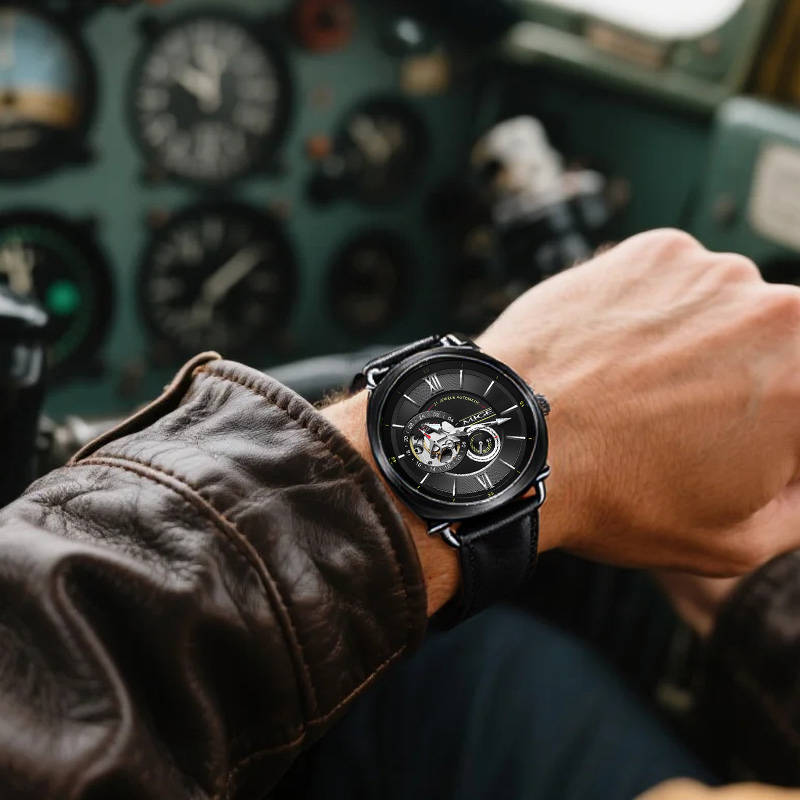 - 战机徽章细节:24小时刻度处饰以微型飞机标识,底盖则采用涡轮发动机浮雕设计,细节之处尽显匠心。