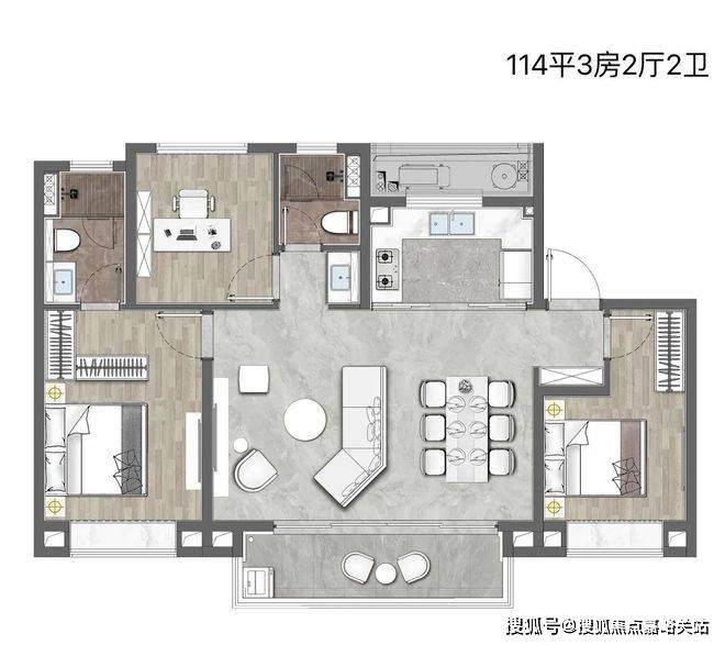 此外,在整体空间舒适度的打造上,独立西厨区、奢适餐客区、长U型厨房、主卧套房带玄关且南向双开窗,抢眼的窗墙比、隐私分区布局、3间次卧面宽进深比接近黄金比例、收纳空间充足,整体上空间奢享感的提升,满足了客群对于改善产品的需求,甚至超出了客户的预期。